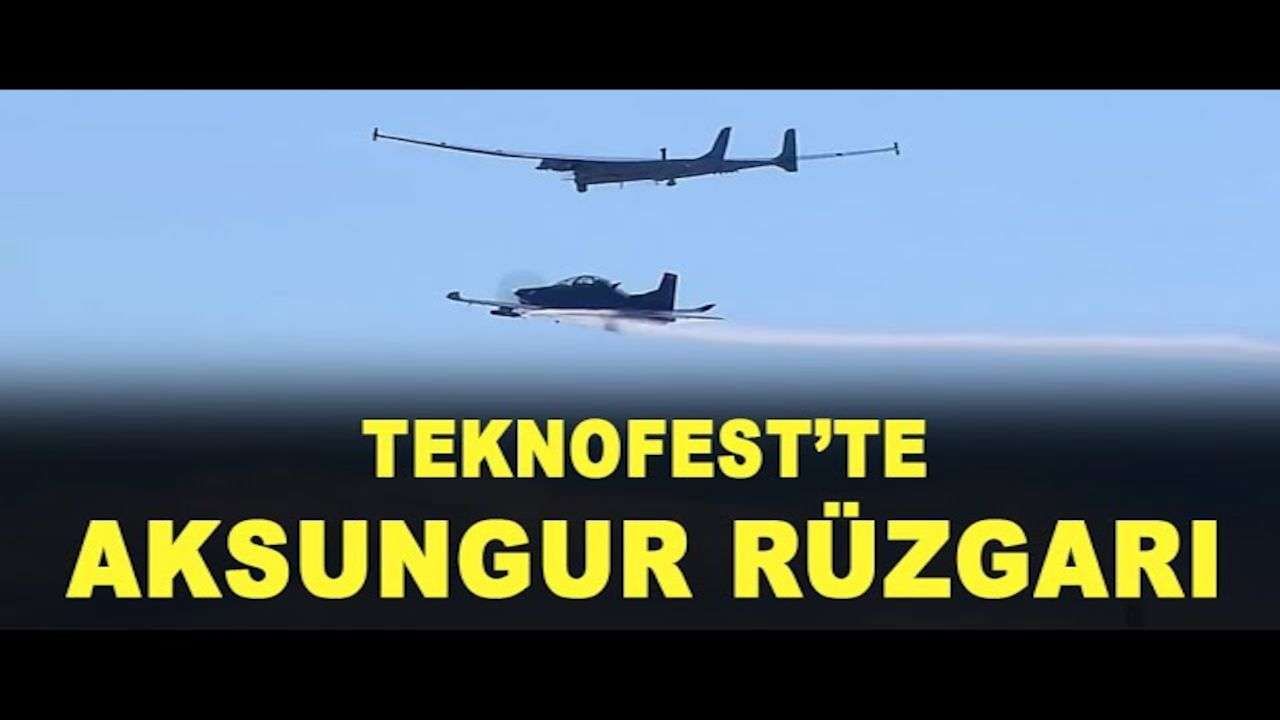 Aksungur İHA, Havacılık, Uzay ve Teknoloji Festivali TEKNOFEST'te Hürkuş ile uçuş gösterisi gerçekleştirdi.