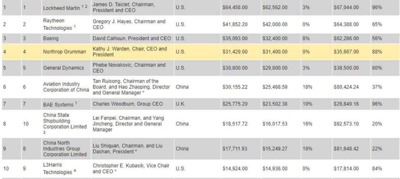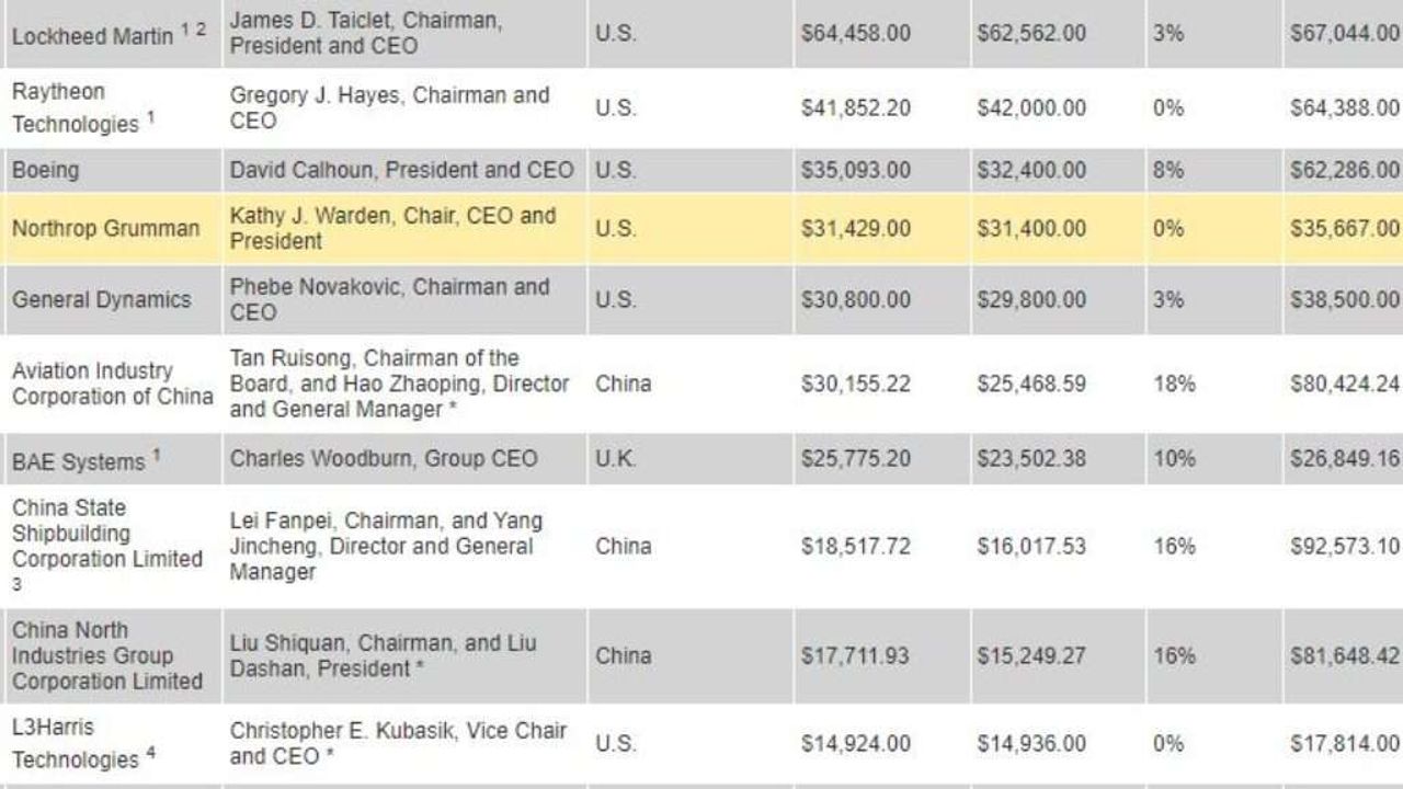 Listenin tamamına buradan ulaşabilirsiniz: Defense News Top 100