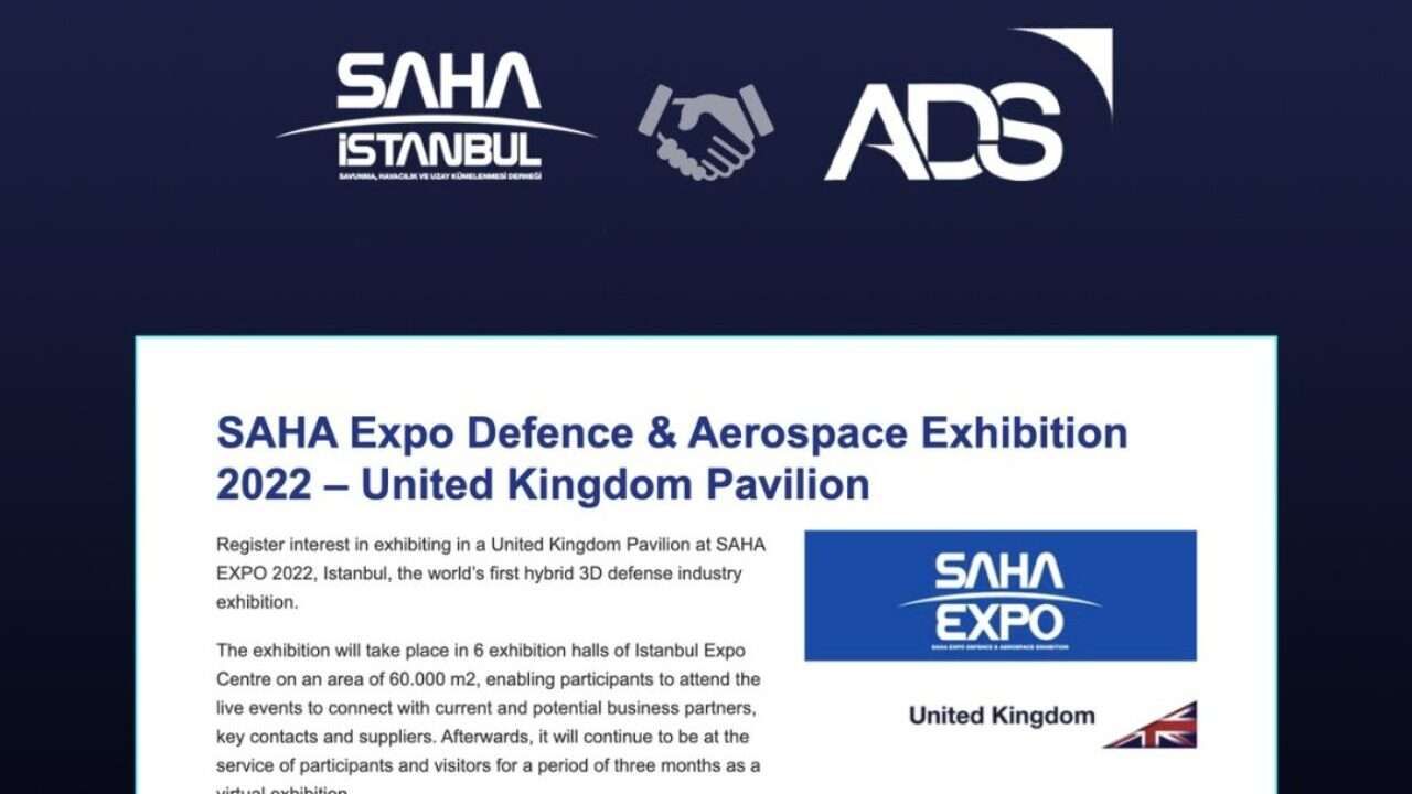 İngiltere'nin savunma, havacılık ve uzay sektöründen 1100 firmasının temsilcisi ADS Grup, Türk ve İngiliz firmaların ilişkilerini güçlendirmek ve ticaretini geliştirmek adına İngiltere Dış Ticaret Bakanlığı ile birlikte SAHA EXPO 2022'de yer alacak.
