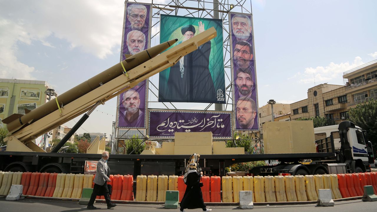 İran'da "Kutsal Savunma Haftası" adıyla anılan ve Irak ile 1980'de başlayıp 8 yıl süren savaşın 44. yılında Tahran'da Meclis yakınındaki Baharistan Meydanı'nda sergilenen silahların yanına İran lideri Ayetullah Ali Hamaney'in posteri asıldı.