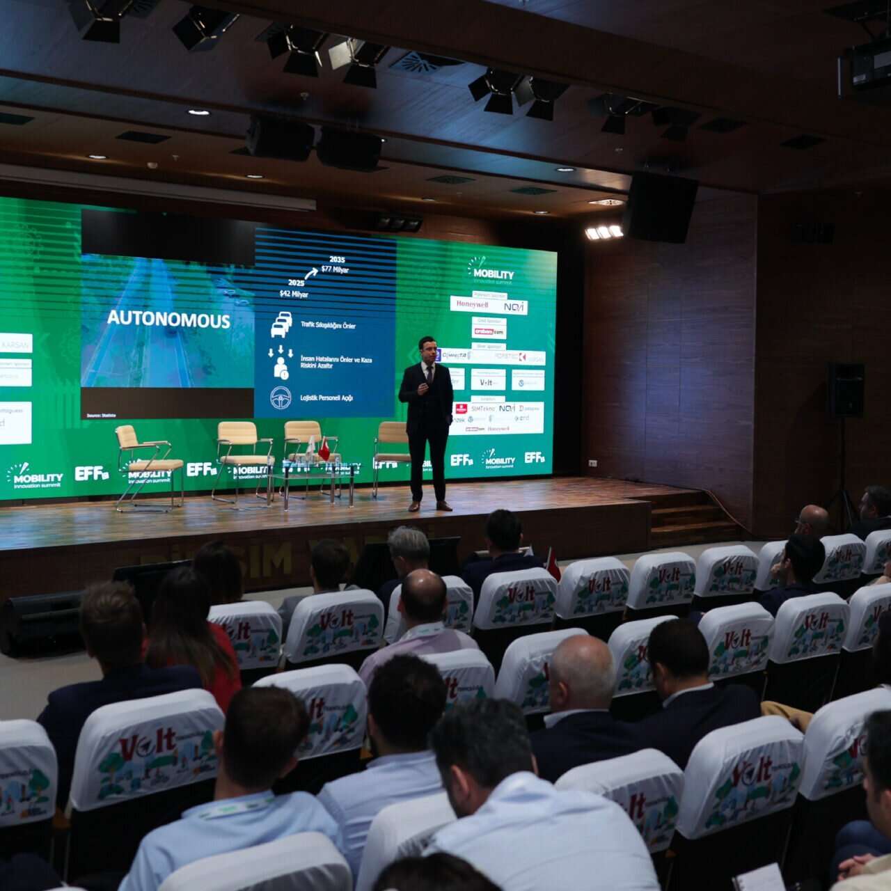 Kükrer konuşmasında, otomotiv dünyasının güncel 4 mega trendi olan, bağlantılı, otonom akıllı ve elektrikli araçlar gerçekten tüm mobilite zorluklarımıza çözüm getirebildi mi, mevcut fiziki ve legal altyapılar teknolojik gelişmelerle aynı hızda ilerliyor mu ve üzerine çalışılması gereken alanlar ne olmalı gibi soru başlıkları için sunumlar gerçekleştirdi.