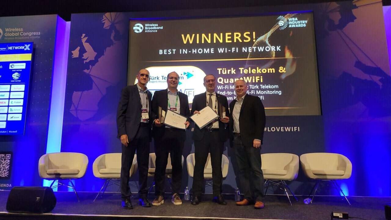 Paris’te gerçekleşen WBA Industry Awards’ta ödülü QuantWiFi Bilişim CEO’su Ali Sayınta ve Türk Telekom Sabit Erişim Direktörü Melih Alper Sanaç birlikte teslim aldı.