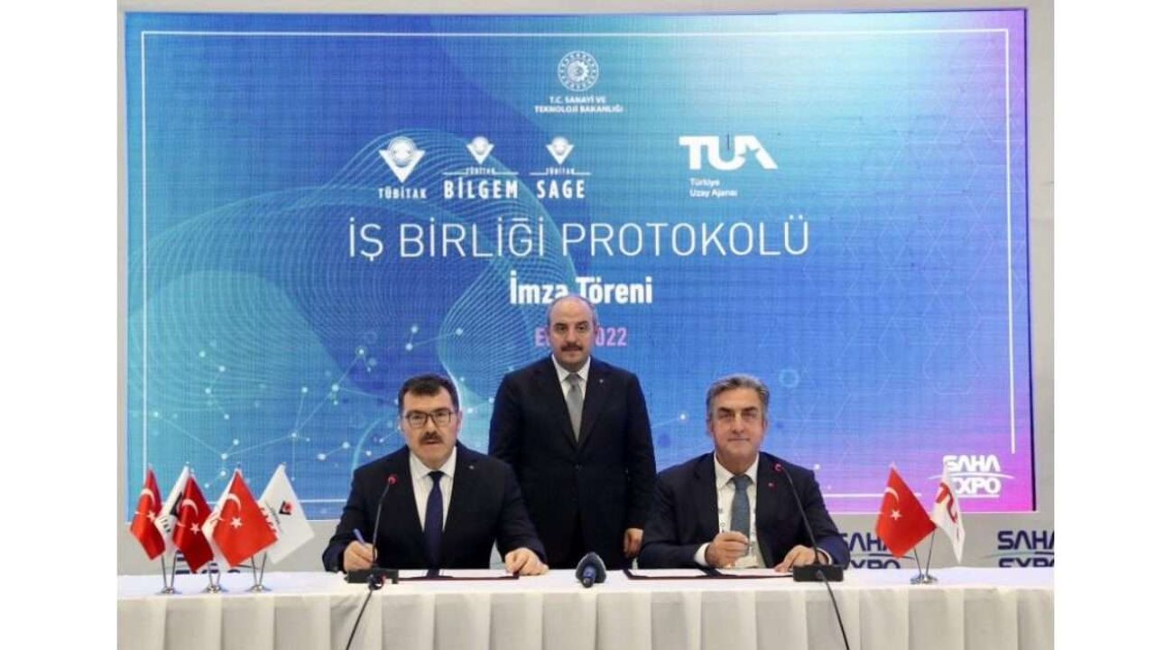 Sanayi ve Teknoloji Bakanı Mustafa Varank’ın katıldığı imza töreninde protokole TÜBİTAK Başkanı Prof. Dr. Hasan Mandal ve TUA Başkanı Serdar Hüseyin Yıldırım imza attı.