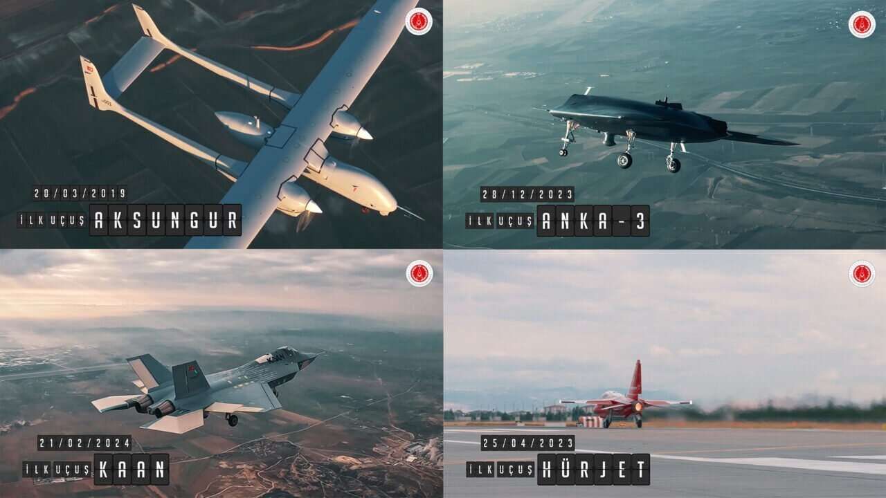 Savunma Sanayii Başkanı Prof. Dr. Haluk Görgün tarafından yayınlanan videoda, HÜRKUŞ, Bayraktar TB2, AKSUNGUR, AKINCI, KIZILELMA, HÜRJET, Bayraktar TB3, ANKA-3 ve KAAN'ın ilk uçuşları gösterildi.